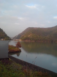 この湖、 朝 通った時には 霧の中に水面が翡翠色に光っていた。